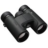 Broaden your perspective with compact PROSTAFF P7 8x30 binoculars. A spectacular extra-wide field of view with 8X magnification reveals more of the scene and is easy to hold steady-great for tracking moving birds, wildlife, and aircraft. Nikon's superior optics and multilayer coatings increase brightness and clarity. Add high-end features like a locking diopter ring and an oil and water repellent coating for easier cleaning, and it's easy to see why the waterproof PROSTAFF P7 binoculars sit at the top of the PROSTAFF line. 8x Magnification Compact PROSTAFF P7 8x30 binoculars deliver the widest field of view in the series-456 feet at 1,000 yards. This wide view makes it easier to locate and track moving subjects, which appear 8X closer, and it's also more forgiving to hand-shake for a steady, clear view. Renowned Nikon Optics PROSTAFF P7 binoculars incorporate superior Nikon optics and lens coatings for a high-quality viewing experience. Higher Definition Nikon's Phase-Correction coating is applied to the roof prisms for increased definition and clarity. Brighter, Sharper Colors Nikon's dielectric high-reflective multilayer prism coating maximizes light transmission across the visible range. Locking Diopter Ring Keeps Your Setting Often reserved for the highest-end binoculars, the diopter ring locks into place so you can set it and forget it. Non-Stick Coating for Easy Cleaning An oil and water repellent coating is applied to both the objective and eyepiece lenses. Simply wipe away moisture, fingerprints, and smudges. Waterproof Whether you're spotting birds near the water's edge or caught in inclement weather, you won't have to worry about PROSTAFF P7 binoculars. (Not intended for underwater use.) Lenses that won't fog. Even going from a warm car to the cold winter air won't fog the lenses on PROSTAFF P7 binoculars. Eco-Friendly Glass The glass used in the PROSTAFF P7 binoculars is lead-free and arsenic-free. Better for you. Better for the environment. Turn-and-Slide Eyecups Retract them for use with eyeglasses. Extend them to your ideal position for comfortable naked-eye viewing. Long Eye Relief PROSTAFF P7 binoculars are designed with long eye relief for a comfortable, clear field of view, with or without eyeglasses. Tough Skinned The dark green rubber-armored body provides a non-slip grip and protection from the occasional drop or bump. Hard-Bodied The PROSTAFF P7 binoculars' lightweight body uses strong fiberglass-reinforced polycarbonate resin.