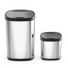 Nine Stars Combo 13gal/50L & 3.2gal/12L Motion Sensor Step Trash Can: Touchless, Hands-Free, Stainless Steel, Pedal-Operated