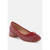 Where elegance meets gleam for your special occasions—crafted with premium real suede leather, these heeled ballerinas are designed to make you shine on the dance floor. The metallic leopard print and a dainty bow detail makes them an even better pair of ballets for any party when you want to dress up! Type: Ballerinas Upper Material: Genuine Suede Leather Outer Sole: TPR Closed Square Toe Metallic Leopard Print Detail Bow Embellishment Low Block Heel Soft Cushion Insole Heel Height: 2 inches RCSH5373