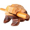 The NINO Wood Frog Guiro brings a delightful croak to music room. Hand-carved from solid wood, this guiro is shaped just like a frog with textured ridges along its back. Running the included wooden scraper over those ridges makes a realistic "ribbit" sound. Kids will love playing this whimsical instrument that has a warm, mellow tone. Included with the Frog Guiro is a wooden scraper that enables crisp, consistent ribbiting.