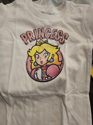 Kids can now join Mario and his friends on a thrilling adventure through the Mushroom Kingdom and help them defeat the evil King Koopa to rescue Princess Peach! So get them ready for the journey with this officially licensed Nintendo Super Mario Bros. Princess Peach Portrait Toddlers' Graphic T-Shirt featuring the sweet Princess Peach with the word "Princess" printed in bold pink letters above her. Grab some Super Mario apparel today and let's-a go!