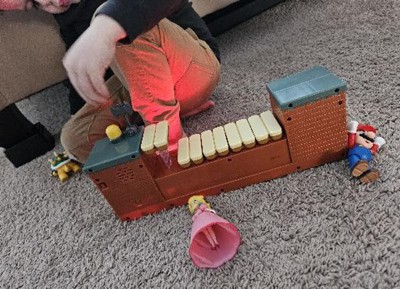[This review was collected as part of a promotion.] We unboxed the Nintendo bowser play set to find an awesome scene inside a lava filled fortress. Where bowser awaits you at the opposite side of a bridge while carefully crossing and attack bowser by hitting the yellow button behind causing the axe to fall and cut the bridge causing it to collapse. Amazing! We think it is just so great!