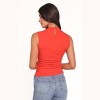 This tank style top is a classic staple. With its high neckline and sleeveless design, you'll be sure to look chic and stylish. The back neck opening with hook and eye close ensures that the fit stays just right. It's also detailed with gathered ruched fabric on the sides for a feminine touch.