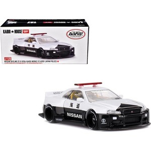 Brand new 1/64 scale diecast car model of Nissan Skyline GT-R (R34) "Kaido Works (V2 Aero)" RHD (Right Hand Drive) Black and White "Japan Police" (Designed by Jun Imai) "Kaido House" Special die cast model car by Mini GT.