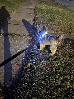 A: Magsmom, Thank you for taking the time to leave this question for us. The NiteHowl can easily be taken off your dog when you are not using it. You can cut the polymer tubing to whatever length you want so you can slide it over the dog's head or connect/disconnect via the connection at the LED module. If you have further questions, please contact customer service at info@niteize.com or at 800.678.6483 8-5 M-F MST.
