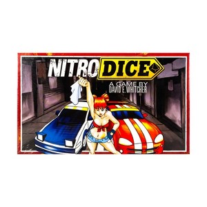 You have the Car. You have the Nerve. Do you have what it takes to win on the open streets in a nitro-burning race for fame and fortune? It won't be easy with opponents that know how to cheat the game and drive the winding streets. You'll be dodging them and anything they can throw at you. Whoever drives fastest, smartest, and toughest will become the Nitro Circuit champion. Nitro Dice is a fast-paced card-driven racing game where pushing the limit of safety is part of the fun. In Nitro Dice players use a ten-sided-die to represent their racecar on a course made of cards. Each racer's speed is tracked on the die itself so that every player can view the position and speed of each vehicle at a glance. Cards are used to maneuver around hazards and avoid collisions with other racers, but also to place traps of your own on the roadway CONTAINS: 1 Start / Finish line card 1 Garage Card 6 Vehicle Condition Cards 12 Nitrous tokens 104 Track / Handling cards 6 Vehicle Condition markers D10 dice not included