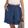 Nlife Women Solid Color Hollow Out Ruffle High Waisted Smocked Pocket Shorts