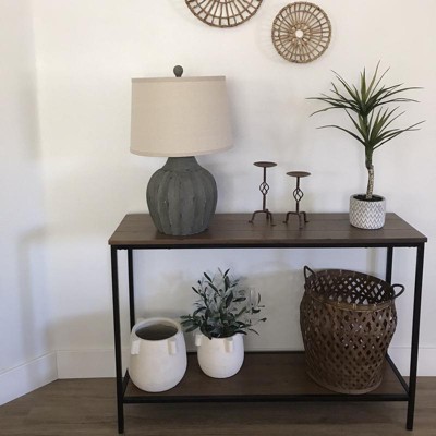 Nolan 2 Tier Console Table Brown - ClickDecor: Rustic Charm, Iron Frame, Entryway Display