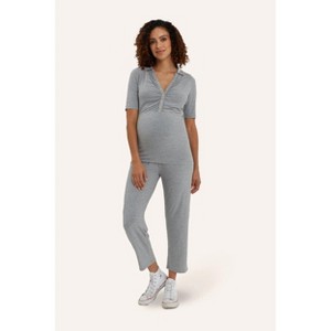 Our newest maternity + nursing top made in our super soft rib jersey. Designed with pretty details like gold snaps and slight ruching across the bust , this on trend polo silhouette is the perfect bump and nursing top. Pair with the Camila Pant for a matching set.
