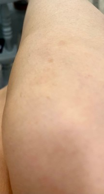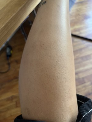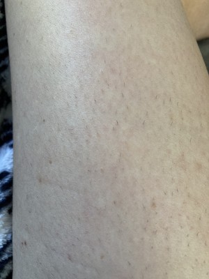 Been using for about 8 weeks now and my hair is not as course or thick, very light in color! I'm going to keep at it! The bumps are also starting to smooth out!!