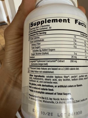 Delicious Curcumin Gummies promote a healthy response to inflammation while helping address metabolic stress in cells, organs, and tissues throughout the body.* Curcumin is a natural antioxidant derived from the root of the turmeric plant (Curcuma longa) that provides unique antioxidant support.* Each 2-gummy serving contains 200 mg Longvida(R) Optimized Curcumin, which is 285 times better absorbed** than other forms of curcumin thanks to patented Solid Lipid Curcumin Particle (SLCP(tm)) technology. Sweetened with xylitol, these vegetarian gummies have a great, natural mango taste with no added sugar or artificial coloring, flavoring, or preservatives.*These statements have not been evaluated by the Food and Drug Administration. This product is not intended to diagnose, treat, cure, or prevent any disease.**Compared to standard 95% curcumin measured using the AUC normalized method.