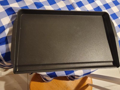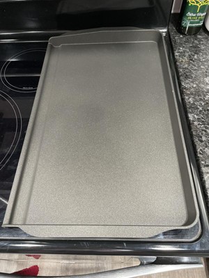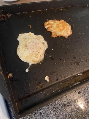 I love how big this griddle is. It fits on top of my stove so nicely and cooks evenly. The nonstick is very effective and clean up was a breeze. The black splash is nice and helps keep the stove top clean. I also like how sturdy the griddle felt without being heavy. Definitely a winner.