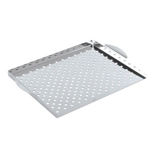 Maximize your grilling and BBQ results with the Nordic Ware Perforated Grill Topper, the ultimate accessory for cooking small, delicate, or sliced foods on your grill. Crafted from pure natural aluminum, this durable grill topper provides excellent heat conductivity and long-lasting performance that will not rust, season after season. Sturdy lipped side handles make lifting, shaking, and carrying safe and easy, even when using grill mitts or gloves.Ideal for grilling vegetables, seafood, shrimp, scallops, asparagus, mushrooms, onions, and potato wedges, this versatile topper keeps foods secure while allowing heat and smoke to circulate evenly, infusing every bite with rich, bold flavor. The small perforations prevent food from falling through the grates, ensuring perfectly cooked results every time.Oven and grill safe up to 500°F, this professional-grade grill accessory is perfect for weeknight meals, backyard BBQs, and large cookouts. Hand wash recommended to maintain its natural finish and ensure long-lasting, rust-free performance for years of reliable use..