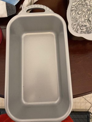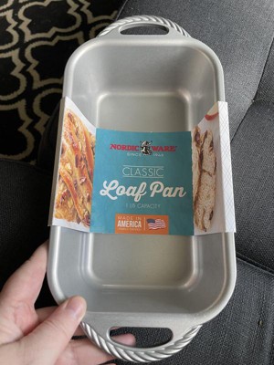 Nordic Ware Classic Cast Aluminum Loaf Pan This pan is awesome. It is a little bigger than traditional loaf pans I have used in the past which is nice. The pan perfectly cooks my bread. It is easy to clean because the pan is non stick, which keeps me from having to do all the scrubbing to clean like other pans. I love the little handles on the side helps me with getting the pan in and out of the oven. I see this pan lasting a long time.