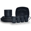 Noritake Colorscapes BoB Swirl (Black on Black) 16-Piece Square Dinnerware Set, Service for 4