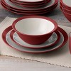 Colorwave Raspberry features a matte coloration suggestive of pomegranates, merlot wine, red velvet, and a rose garden. Most items also have a glossy, cream-colored glaze on the inside. Mix and match the different shapes and add a splash of color to your table! Colorwave offers place setting components as well as an array of serving pieces and accessories.