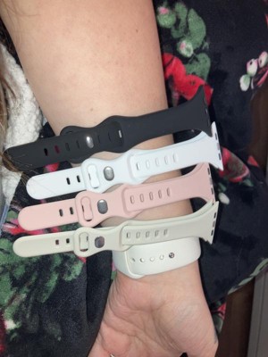 These Slim Apple Watch Bands are made from soft, premium silicone for a superior fit and easy cleaning. The gradually slimming design provides a sleek look and exceptional breathability. With 4 stylish colors included (Pink, white, cream, and black) you can match any outfit.