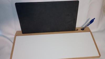 Great product! Looks good between my keyboard and monitor. You can write on both sides, but make sure to remove the plastic protective covering on the top white board. Lots of hidden storage space. I get lots of compliments. :)