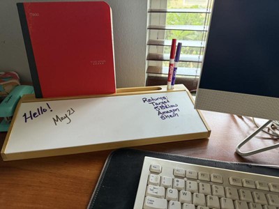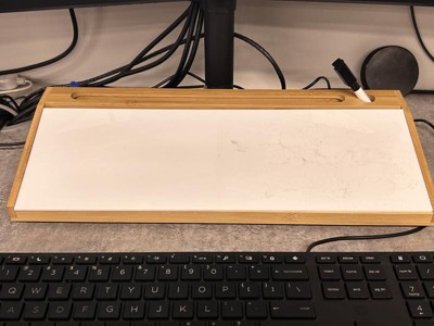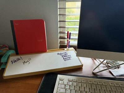 I’ve been using the North Desktop Wipe Board Organizer at my desk for a few weeks now, and honestly, it’s one of those simple tools that makes a big impact on productivity. It sits neatly between my monitor and keyboard without taking up much space, which I really appreciate. The angled design makes it easy to jot down quick notes, reminders, to-do lists, or even random thoughts without shuffling through sticky notes or notepads. One of my favorite features is the dry-erase surface—it writes smoothly and wipes off clean with minimal ghosting. There’s also a small compartment underneath the writing surface where I stash pens, paperclips, and even a couple of USB drives. It’s not huge, but it keeps my essentials within arm’s reach and clears up clutter. What really surprised me was how often I use it throughout the day—whether I’m tracking tasks, making a quick list during a call, or sketching out ideas. It's become a permanent part of my workflow. If you’re someone who likes to keep your desk tidy while still having a place for spontaneous thoughts and quick planning, I’d definitely recommend this. It’s functional, minimal, and actually encourages me to stay organized.