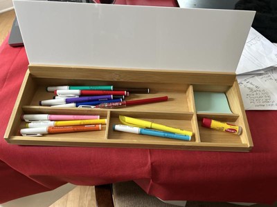 So I really like this, I use it when I work from home. The whiteboard works really well! It has organization compartments, the only downside is that while they are very nice compartments, I have to set my glasses in the very back, and make sure absolutely nothing is underneath them for them to fit. It’s very shallow if that makes sense.