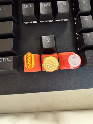 The North Figural Keycaps are interesting. This set includes a cheeseburger, fries, and a can of soda, space bar and ESC cap in matching colors, and lastly the cap remover. I am not sure exactly what these are for besides having a different look to your caps. The product is made very well. This set says that it's compatible with most mechanical keyboards. However, I do not recommend using these on any kind of gaming keyboard.