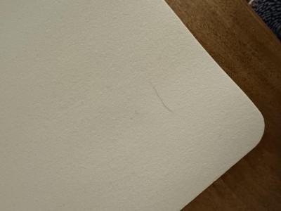 As soon as I opened the box I noticed a very strong odor. I had to let it air out a few days before I could use it. This desk mat does not lay flat. The backing had dirty marks out of the box. The soft white backing also collects any dust or cat fur. The desk mat also slides around easily. I like the beige color.