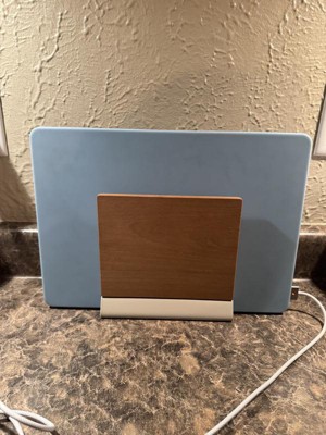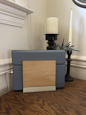 My daughter always charges her laptop for school out in our kitchen on the counter, which is hard with space. It’s small but very sturdy to hold a computer in place and prevent any tipping or damage, but you can also leave it charging while using it since it has open sides. Looks decent sitting out with one side being wood and the other metal. Overall a great addition and something I didn’t realize how nice it would be to have. Would recommend to others.