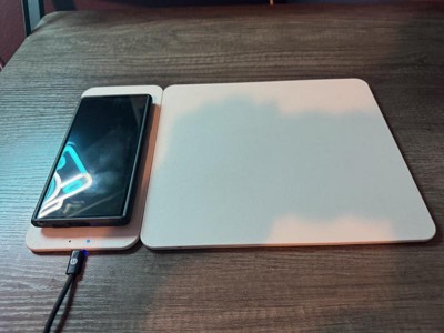 This wireless charging mousepad from North is very handy and versatile. The charging area is large and I like that it is detachable from the mousepad itself. You can use it either left handed or right handed. There is a red light thst indicates the mousepad is receiving power and another light that is blue to indicate your phone is charging. I really like this a lot!