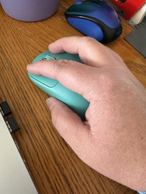 This is the perfect size mouse. Just the right size for my hand. Moves around well and clicks easy. The color is adorable and looks great on my desk. Love that it’s cordless and communicates well with the computer.