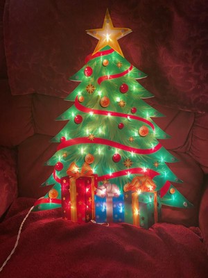 What’s easy to hang and adds instant holiday cheer to your home? How about this colorful 22.5-inch holiday tree window silhouette by Northlight! This classic window decoration uses 50 clear mini lights to light a star-topped holiday tree and the colorful presents arranged beneath its boughs. The one-sided decoration comes with replacement bulbs and spare fuses to ensure years of enjoyment.