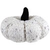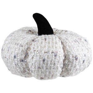 Bring cozy seasonal style to your home with this pumpkin decoration. Featuring a white woven pumpkin design, this decorative accent blends farmhouse themes with modern texture, making it a standout piece for your fall decor. The soft covering is woven with delicate iridescent strands that shimmer under the light, giving the pumpkin a warm and inviting glow that catches the eye from every angle. Perfect for tabletops, shelves, mantels, or entryway displays, this woven pumpkin offers versatile styling that complements both traditional and contemporary spaces. Its neutral ivory tone allows it to pair seamlessly with other seasonal accents such as gourds, acorns, autumn leaves, or metallic harvest pieces, while the subtle sparkle makes it suitable for elegant Thanksgiving gatherings. Crafted for long-lasting beauty, this tabletop pumpkin provides the charm of seasonal decor without any upkeep. Place it alone for a simple yet stylish look or combine it with an arrangement of pumpkins in various textures and colors for a layered display. Whether used for everyday autumn decorating or as part of a Thanksgiving centerpiece, this knitted pumpkin brings a touch of cozy elegance to your autumn decor.
