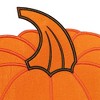 Embroidered detailing on the stem, leaves, pumpkin ribs, and edges