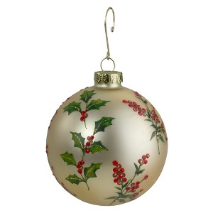 Northlight Gold Holly Berry Glass Ball Christmas Ornament 4" (100mm)