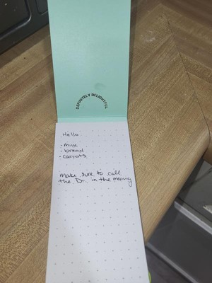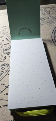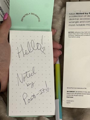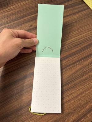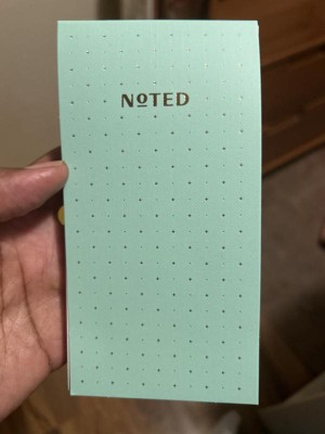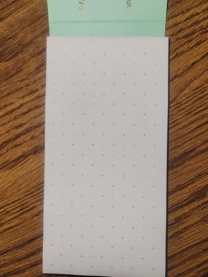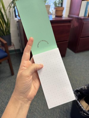 [This review was collected as part of a promotion.] I need to write things down otherwise I will forget! This little notepad is the perfect size and the pages are post-its so I can stick the notes anywhere. The white dot grid makes it easy to write neatly. I like that the notepad fits comfortably in my hand to easily write notes. The elastic band keeps the notepad covered.