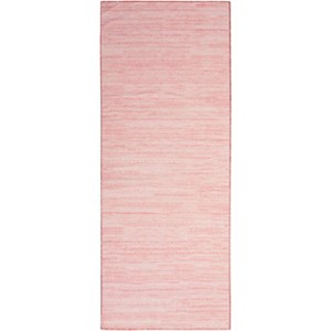 This Washable Essentials rug is the perfect blend of style and practicality. The pink ground is made chic with subtle tonal variations, while the smoothly textured construction makes cleaning a breeze. Just toss this rug into your washing machine to keep it looking fresh. This lightweight rug is made from a blend of polyester and cotton fibers with bound edges and a ridged, recycled cotton back.