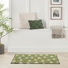 Add a cozier feel to your seasonal decor with this holiday accent rug. A field of chalk-art style fir trees adorn the olive-green backdrop, bringing modern style with a touch of rustic flair to your entryway, bathroom, or kitchen. This Christmas accent rug is made from polyester for easy cleaning and durability.