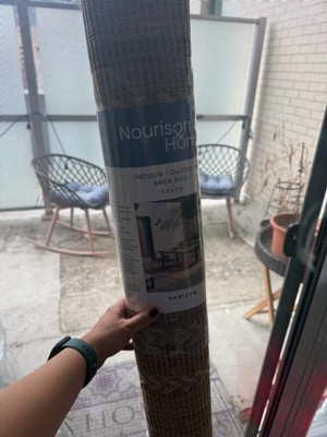 [This review was collected as part of a promotion.] This is the first time I’ve ever reviewed a rug, but this is a great start! The rug is 5’7 square, and can be used indoor/outdoor but the material might be better suited for outdoor use, such as on a covered patio. It seems sturdy enough to get wet. They also recommend that if used indoor, a rug liner should be used under. The texture is rough, so I’m not sure how well it’ll work indoors.