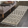 A: The rug features rows of diamond patterns along with dots etched into its plush shag pile.