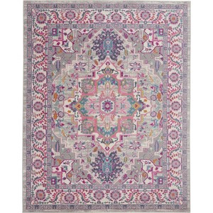 This timeless Oushak star medallion rug design takes on a contemporary tone with brilliant shades of pink on a grey multicolor field. With easy-care fibers, it's the perfect infusion of Boho charm for any space in your home or dorm room.