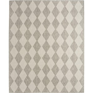 Make a statement both inside and outside your home with this checkered diamond outdoor rug from the Positano collection. The retro tile-inspired design adds a stunning pop of pattern, boosted by a space-dyed color effect in light grey. This versatile rug is flat woven for easy placement in all your most used rooms – from the living room, kitchen, and bathroom to the patio, backyard, or deck. Hand washable outdoors only: rinse with a hose and air dry.
