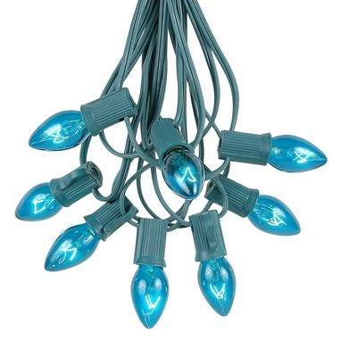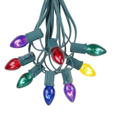 Novelty Lights 100 Feet C7 Christmas String Light Set, Vintage Holiday Hanging Light Set, Green Wire