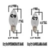 - Each C9 twinkle bulb is 7 watts with a 3,000 hour bulb life and made with a E17 intermediate nickel base