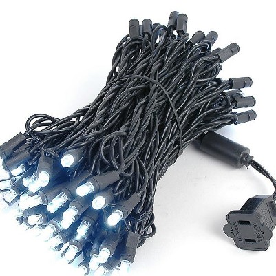 Our super bright black wire 100 light wide angle mini lights have 100 commercial grade LED bulbs on 6" centers making each string 50' long. These strings have non-removable LED's that eliminates failures from loose, broken, or removed bulbs. These commercial grade LED Christmas lights are very durable, long lasting, and extremely energy efficient. Each string is full wave rectified which eliminates any flickering while making these LED Christmas lights brighter than ordinary LED mini Lights. Each LED uses a patented concave design making these LED viewable from all angles. UL listed for indoor and outdoor use. Connect up to 21 strings end-to-end.