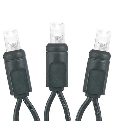 Our super bright black wire 100 light wide angle mini lights have 100 commercial grade LED bulbs on 4" centers making each string 34' long. These strings have non-removable LED's that eliminates failures from loose, broken, or removed bulbs. These commercial grade LED Christmas lights are very durable, long lasting, and extremely energy efficient. Each string is full wave rectified which eliminates any flickering while making these LED Christmas lights brighter than ordinary LED mini Lights. Each LED uses a patented concave design making these LED viewable from all angles. UL listed for indoor and outdoor use. Connect up to 21 strings end-to-end.