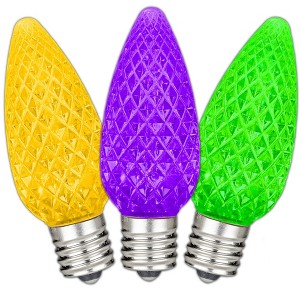 Novelty Lights NL SELECT Diamond Faceted C9 Retrofit Bulbs utilize bright SMD LED's creating vivid and festive light displays. NL SELECT C9 Retrofit bulbs utilize an ultra durable polystyrene plastic shell providing resistance to chips, fading and cracking. All of our LED C9's are energy efficient using only 0.65 Watts and 0.005 Amps with built in dimming capability, perfect for animated displays. Built to last with a 2 season warranty or 1 year permanent use, our NL SELECT C9 Diamond Faceted LED bulbs will provide years of quality use. Perfect for seasoned Christmas light installers, yet easy for anyone to decorate roof lines, trees, buildings, walkways and porches.