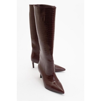 Noya Burgundy Cilt Stiletto Boot (Women) | Prologue Shoes