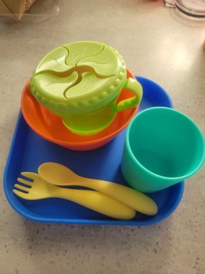 [This review was collected as part of a promotion.] This is a nice set that includes all the essentials for my toddler. I love how easy the utensils are to use and the snack container is used daily in this house!