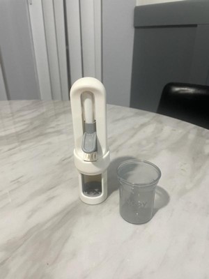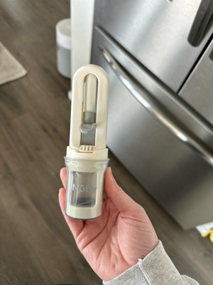 [This review was collected as part of a promotion.] I think it’s a great idea and very user friendly! While the product is on the smaller side, I love a multi-use kitchen tool and I would’ve loved to get maybe 1 extra blade for chopping in HALF. It only cuts into 4 which makes them a bit too small for my 3 year old who enjoys them chopping only in 1/2. Works well, small and compact, comes with blade cover/ mini serving cup. All in all, is a yes for me!