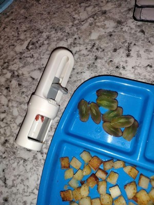 [This review was collected as part of a promotion.] If you have a small fruit eater this is a must. It’s so easy to cut grapes and small strawberries in. It’s very clean and quick. We cut up grapes and put them in our toddlers lunch all the time. It’s much safer than using a knife.