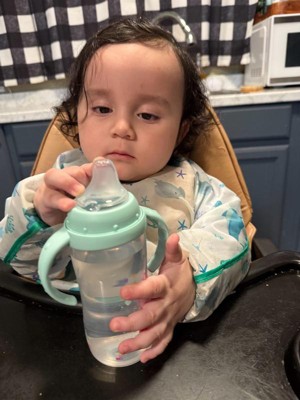 - Spill-proof, soft spout is designed to be gentle on gums while teaching baby to drink from a spout. Liquids flow easily when sipped